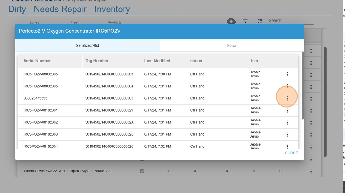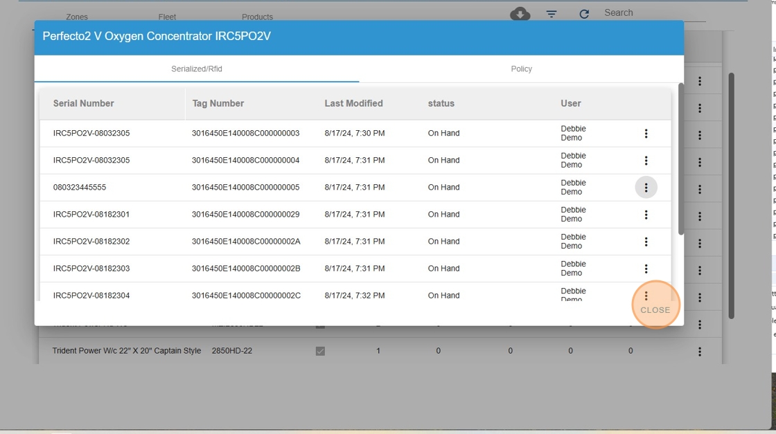 8. Click “CLOSE”. The item/tag will be removed from view.